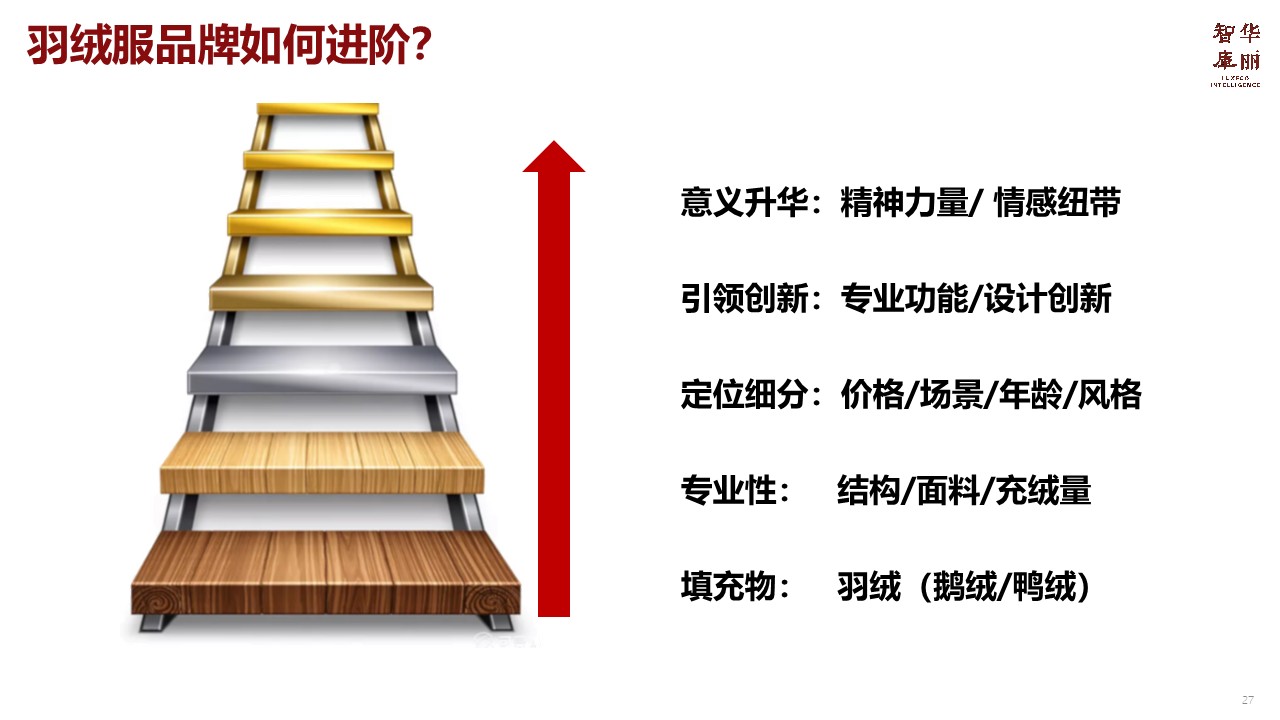 在比较低迷的高端消费市场环境中,如何在广大中国消费者心智中持续打造高端形象,并真正拥有“定价权”,堪称中国羽绒服品牌高端化进程中最大的挑战。