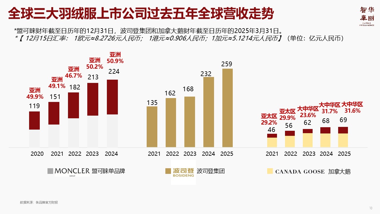 2024年,中国羽绒服市场规模已突破2270亿元,同比增长15%,预计2025年将达2500亿元。海外羽绒服上市公司 Moncler 和 Canada Goose 的最新财报显示,中国市场是其最重要的增长引擎,持续领跑亚洲乃至全球核心市场。