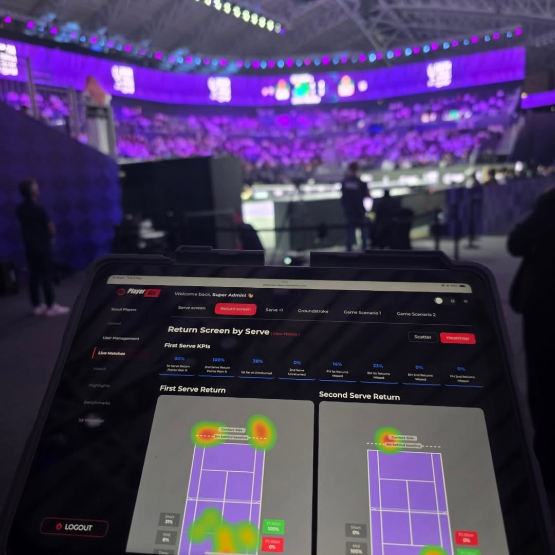 DDSA 的数据库非常全面,我们会持续更新排名前100的所有球员的数据。即使是大满贯赛事期间,我们也会确保涵盖前200名球员的数据。在看到签表后,我们还会尝试收集一些近期比赛的数据,包括发球风格相似、球员类型相近的比赛。我们会迅速将分析结果反馈给教练,并根据我们共同制定的 KPI 生成数据报告,然后提交给团队。