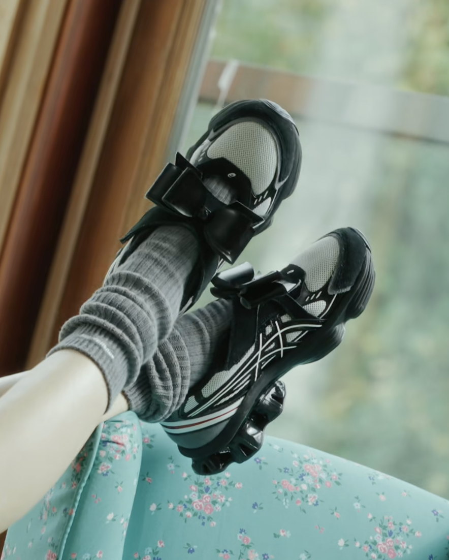 33)服装品牌 SHUSHU/TONG(雷留树&蒋雨彤)再次与运动品牌 ASICS 亚瑟士合作,推出全新联名鞋款。该鞋款融合ASICS经典鞋型GEL-KINETIC FLUENT的前卫结构感与街头风格,并将虎爪纹Logo与大蝴蝶结装饰相搭配。