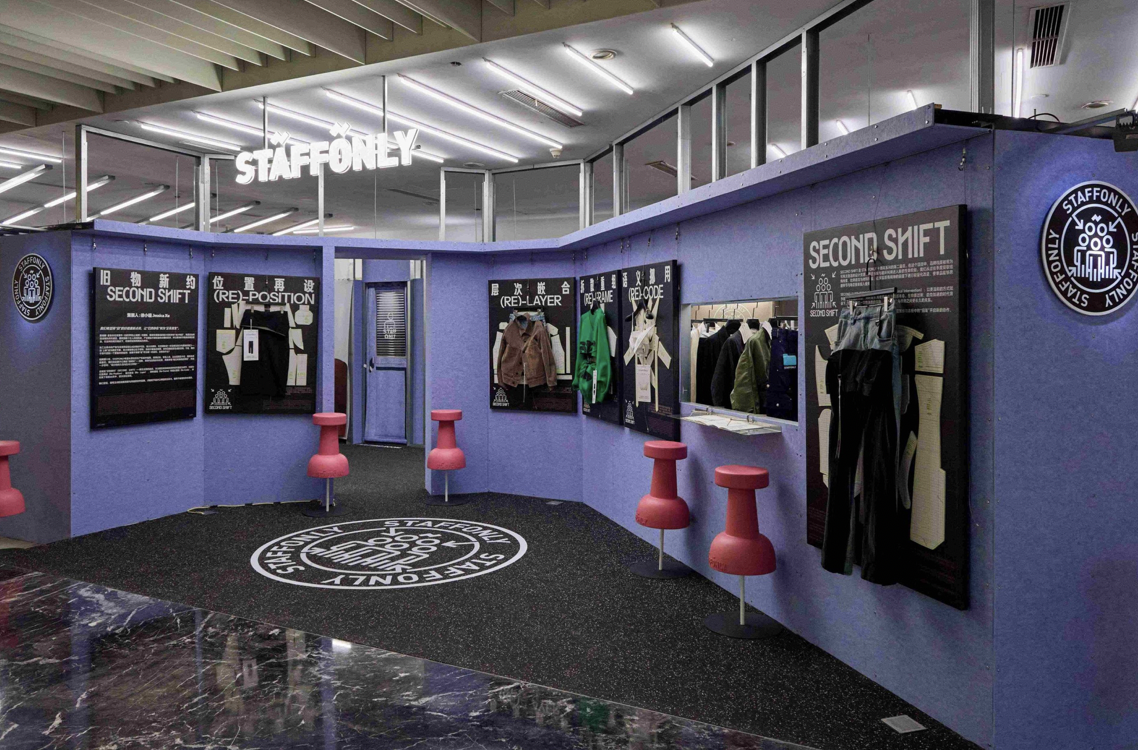 44)在品牌十周年之际,服装品牌 STAFFONLY(周师墨&温雅)在上海芮欧百货开设名为“集合点”的限时空间,并在此推出全新展览项目 「SECOND SHIFT|旧物新约」。空间中不仅呈现了改造后的服装与物件,也展示了设计过程中留下的思考过程、拆解痕迹、制作版型与使用线索。(展期:2025年12月26日至2026年2月6日)