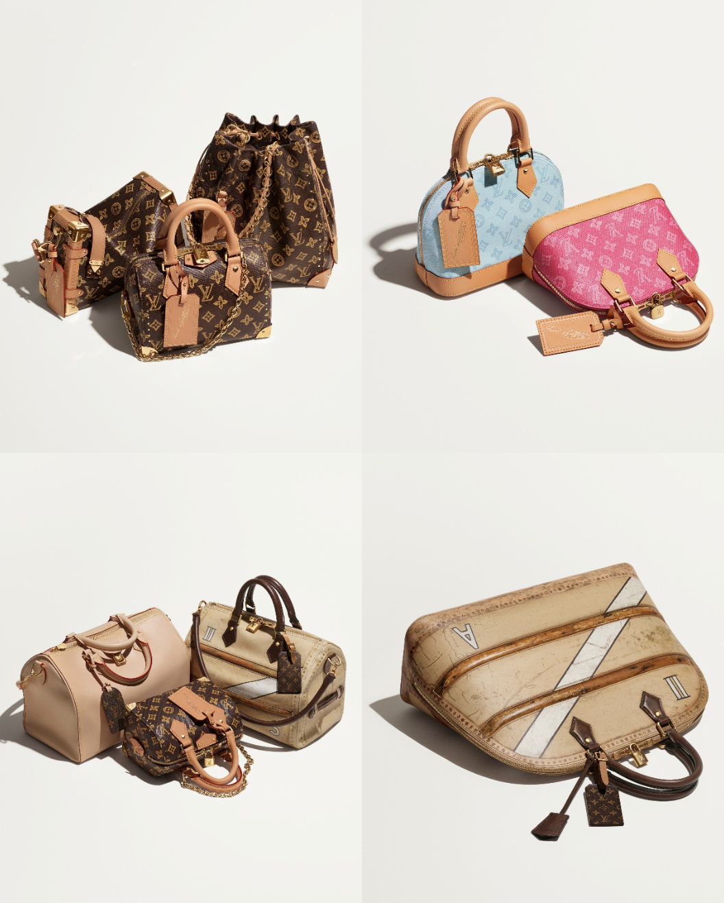 每一款型均配有专属皮革行李牌,印有包款名称与创作日期,同时将包名首字母(A 代表 Alma,N 代表 Noé,S 代表 Speedy)巧妙隐于印纹之间。