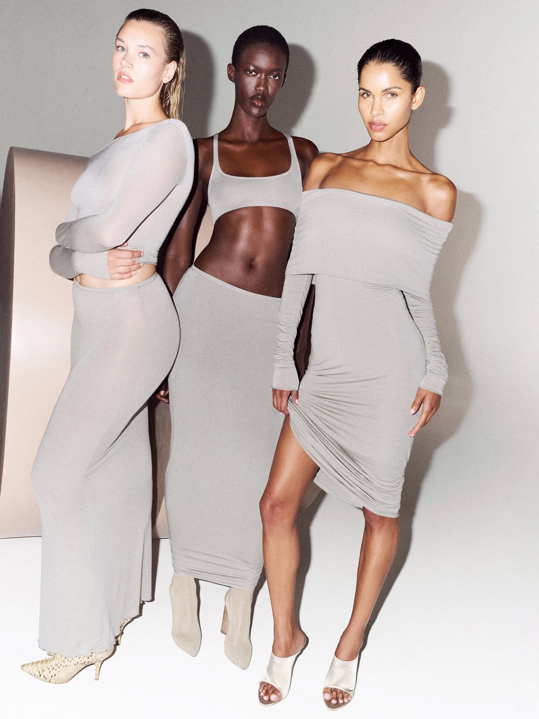 上图:金·卡戴珊与两位 SKIMS 联合创始人 Jens Grede 和 Emma Grede