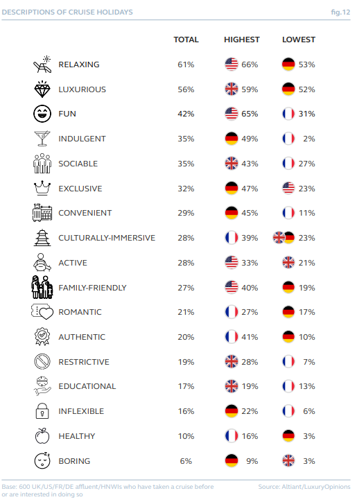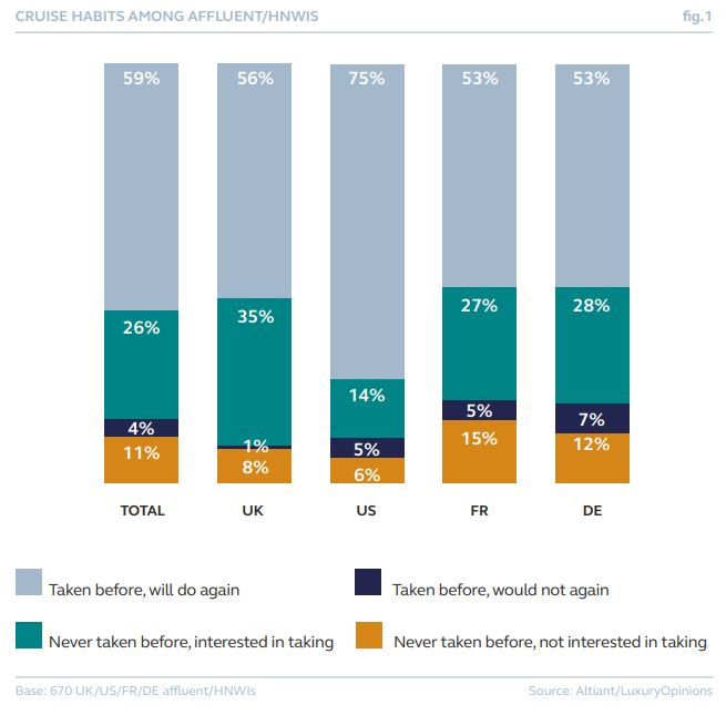 奢侈品行业研究咨询公司 Altiant 近日发布全球奢华邮轮行业洞察报告《The Sail: A new era for luxe cruising 航海:奢华邮轮的新时代》,报告的调研对象为英、美、法、德四国的高净值人群。