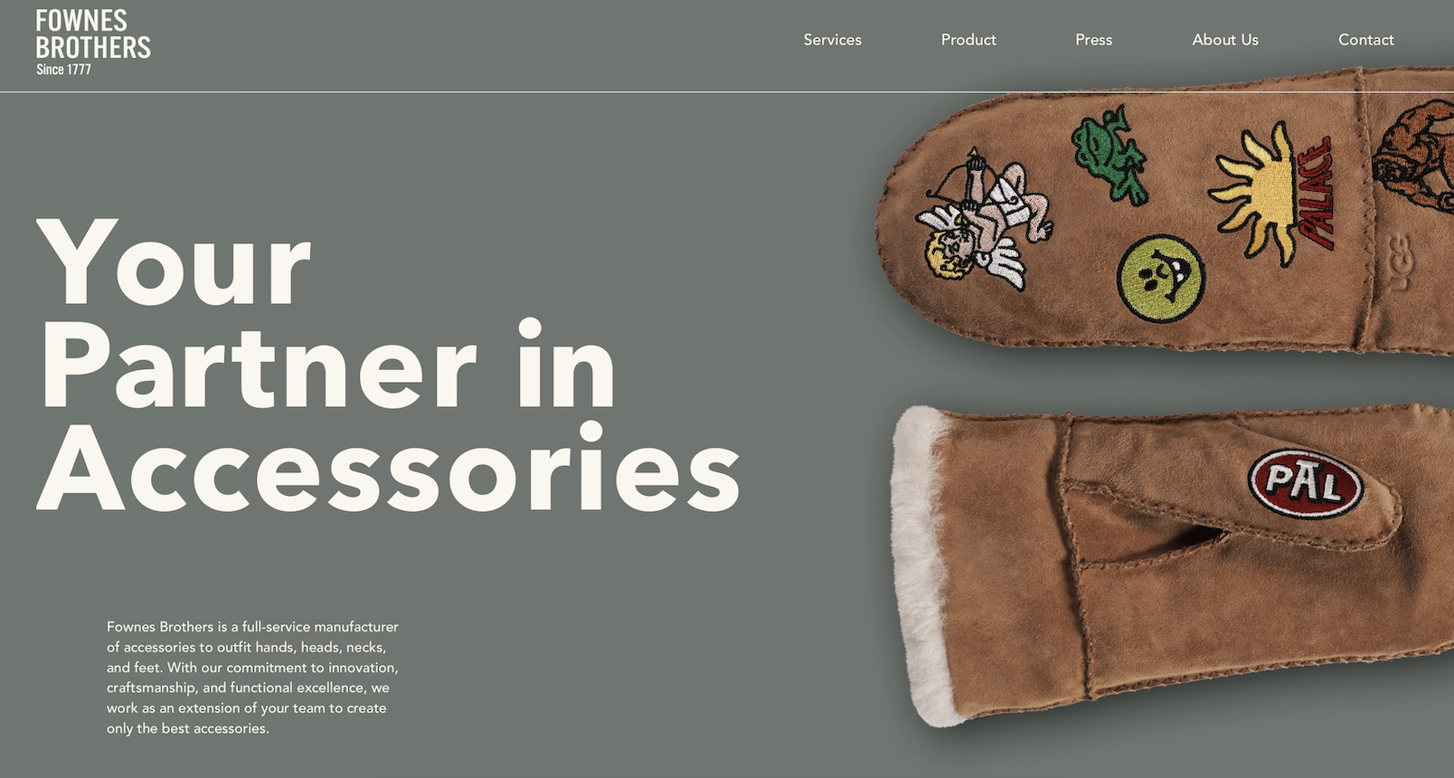 Fownes Brothers 成立于1777年,最初是一家顶级皮手套制造商,目前由 Tom、Andrew Gluckman 家族所有,是授权及自有品牌防寒配件(帽子、手套、棉鞋)领域的顶级进口商与分销商,与全球领先品牌及零售商已建立有数十年的长期合作关系。