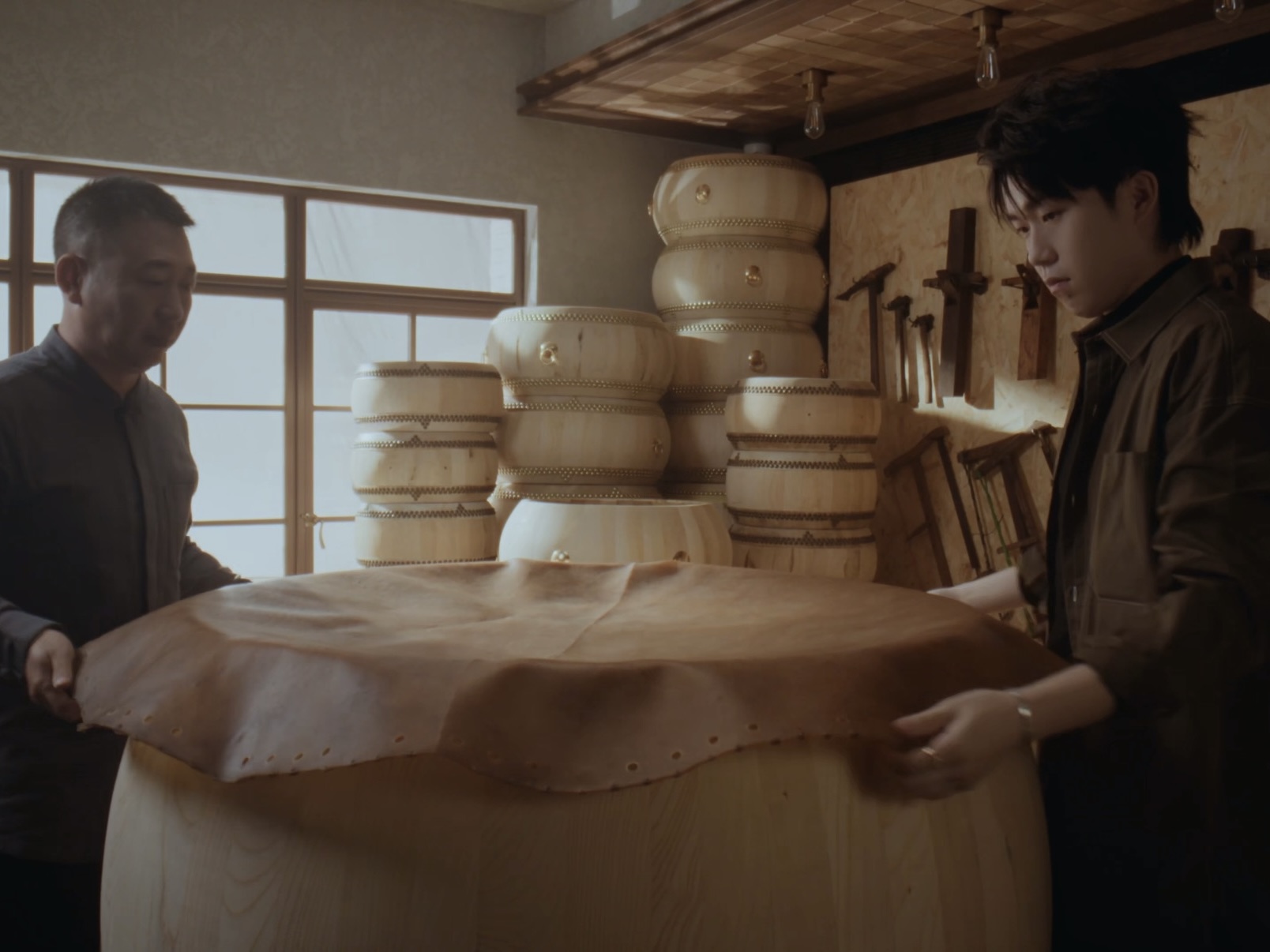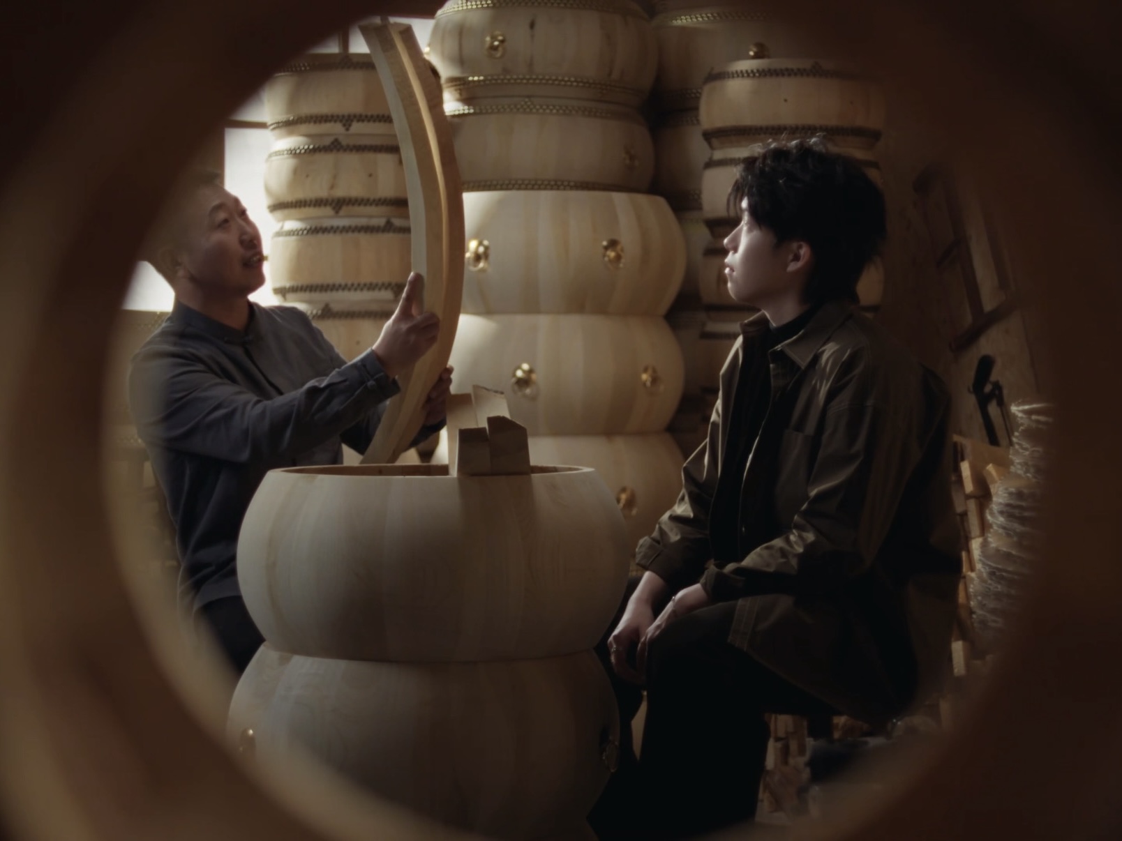 此次合作中,王楚钦走进晋南威风锣鼓国家级代表性传承人张勇的制鼓工坊,亲手体验了制鼓皮、定鼓音,并将象征福禄的葫芦符号铭刻于鼓身。