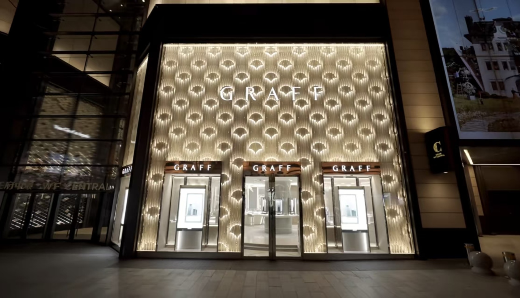 Graff 与 IWC 万国表、Jaeger-LeCoultre 积家,以及 Van Cleef & Arpels 梵克雅宝国内最大精品店,一起构成了王府中環东北角的“中環小金角”。同时,Tiffany 蒂芙尼、Catier 卡地亚等珠宝品牌已经占据了王府中環临街铺位巨大外立面。