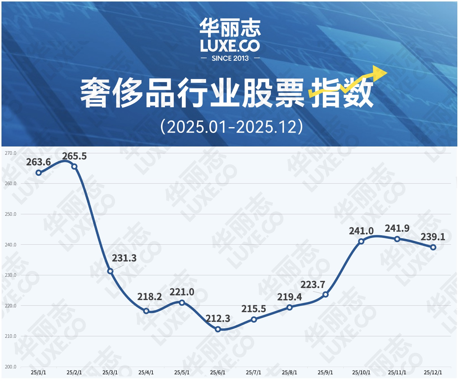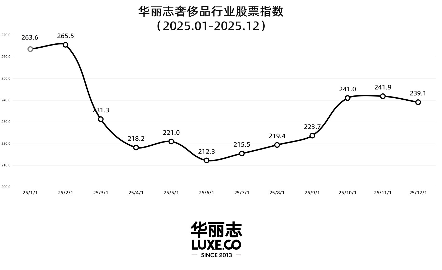 2025年,全球奢侈品行业进入调整期,“华丽志奢侈品行业股票指数”走出了“N字型”轨迹: