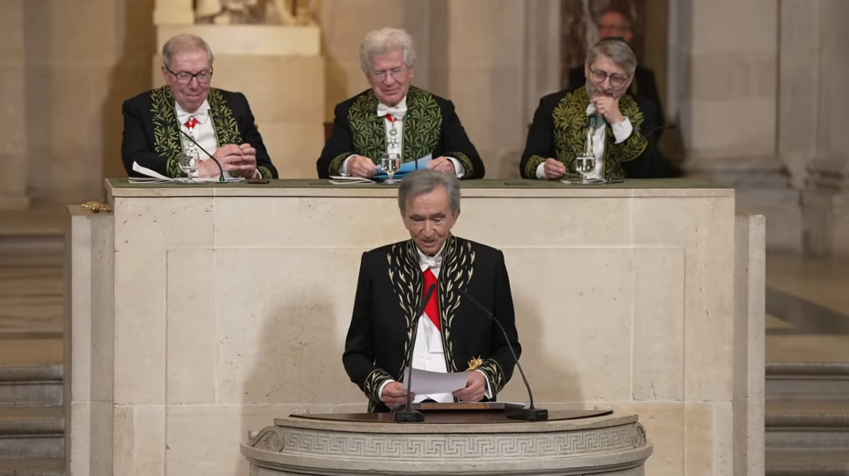 1月12日,法国奢侈品巨头 LVMH 集团董事会主席兼首席执行官 Bernard Arnault 出席了法国著名学术机构“法兰西人文院”的就任仪式。