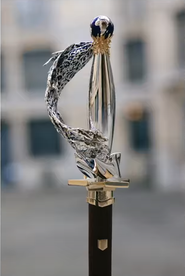 此外,Bernard Arnault 还在佩剑上加入了字母“X”(Arnault 的母校巴黎综合理工学院的昵称)、一个象征LVMH集团全球影响力的地球仪图案、迪奥(Christian Dior)品牌的幸运星标识、以及他五个子女的名字首字母。