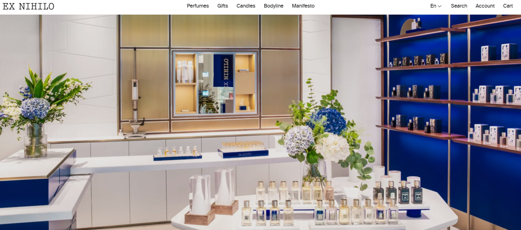 品牌在香水领域独树一帜,以其代表作“Fleur nartique”、“Blue Talisman”而闻名,目前有78款产品,售价介于165至365美元之间。此外,品牌还利用技术手段,通过差异化服务 “Osmologue”为顾客提供香水定制合成服务。Osmologue 一词源于古希腊的 Osmology 科学,即香味科学。这项技术是 EX NIHILO 的独有技术,可以精确地计量和混合香水中的不同成分。