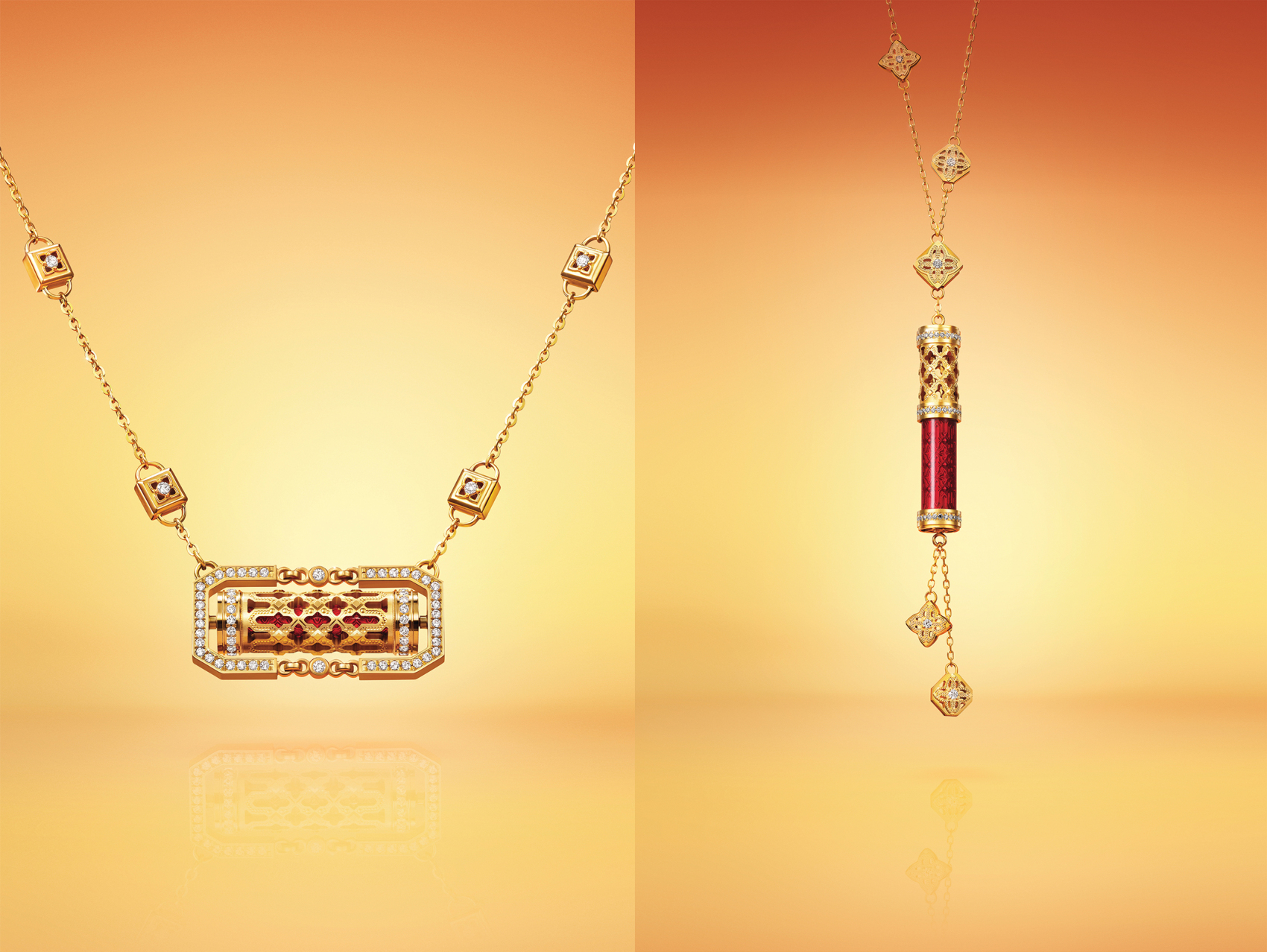 周大福传承系列新春款,以中国传统“爆竹”为核心灵感,融合吉祥纹样“柿蒂纹”,将驱邪避祟、万事如意的美好祝愿融入现代珠宝设计