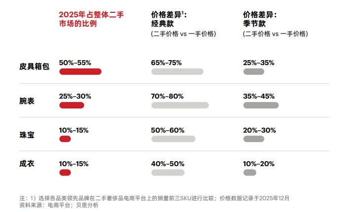 在一手市场面临挑战的同时,二手奢侈品市场延续强劲增长态势,2025年增速达15%-20%,但市场渗透率仍较低,占整体个人奢侈品市场的比例仅8%-10%,远低于成熟市场20%-30%的水平,增长潜力显著。