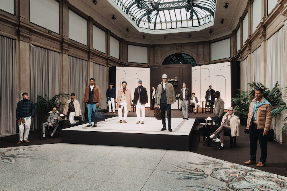 与女装相比,男装往往摒弃冗余装饰,更专注于剪裁与面料本身。本季,Zegna、Canali 等意大利奢侈品牌再次彰显了对面料的坚守与持续研发。尤其是 Zegna,时装发布以“家的衣橱”为主题,将家族世代的身影投射于衣物之上,演变为一种独特的传承叙事。