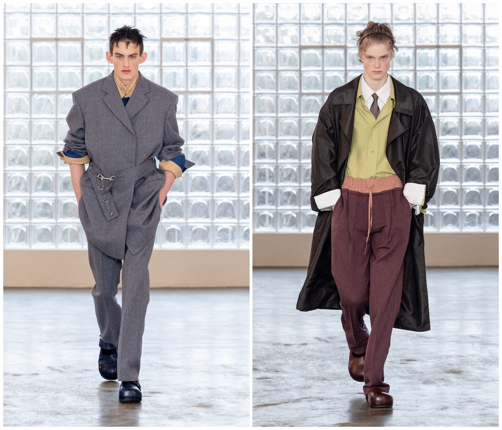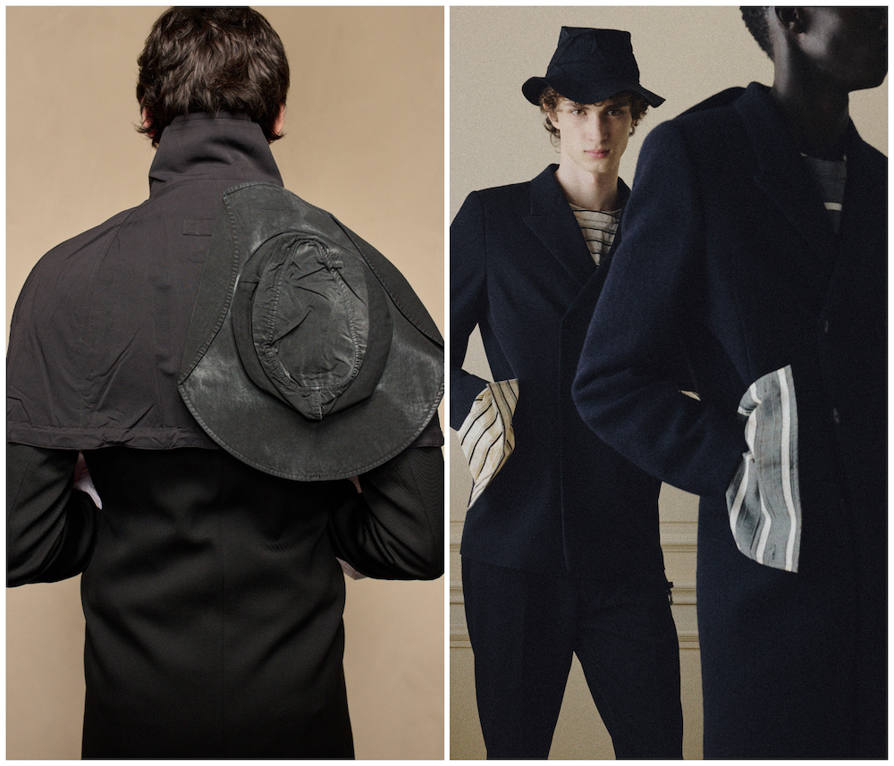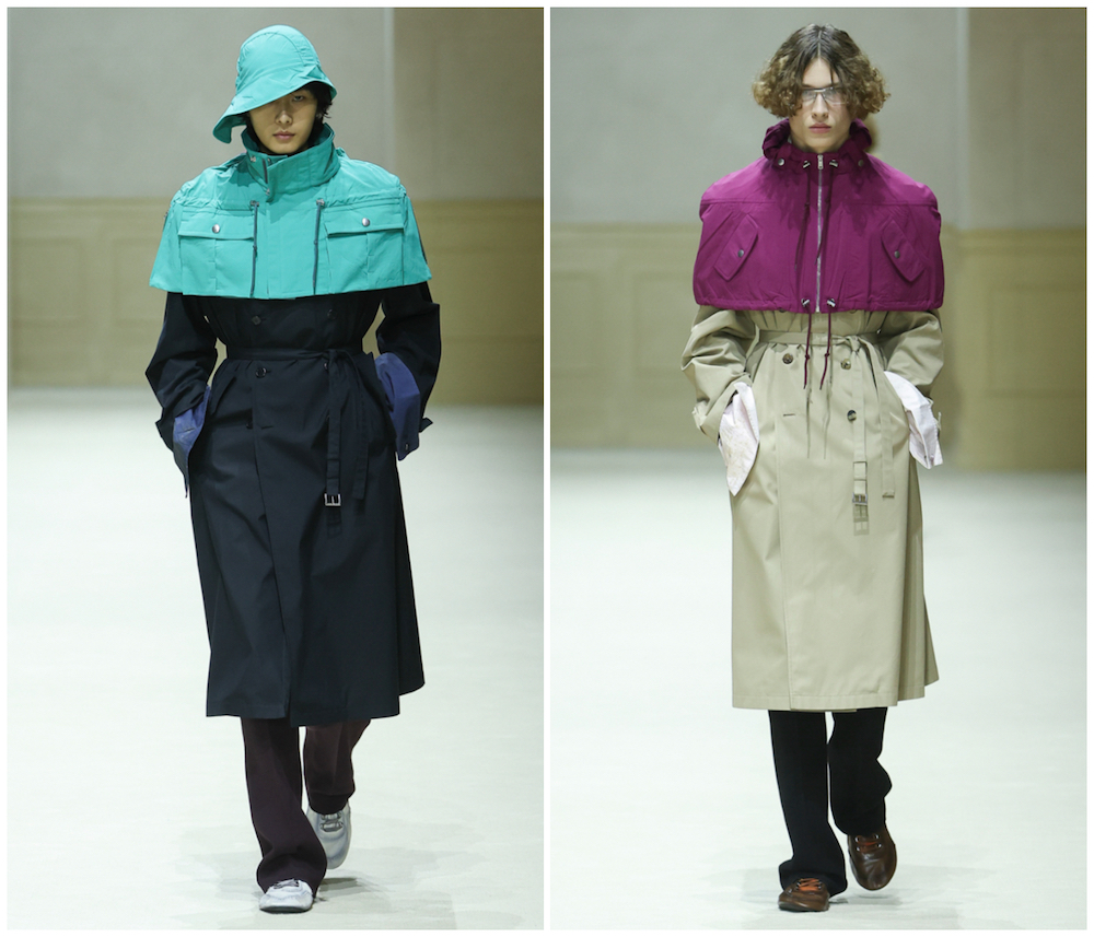 细节之处亦富趣味:多套外套背后饰有压扁的帽饰;与服装撞色的超大袖口,即使模特双手插袋依然可见。