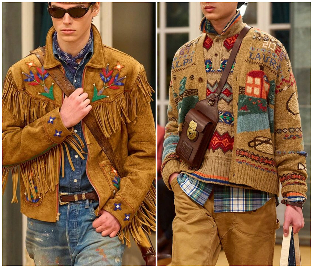 Polo Ralph Lauren 率先开场,该系列色调饱满,洋溢着青春活力。产品包含复古风格的户外装、饰有手绘图案的工装外套,以及西部风格的麂皮夹克与做旧效果牛仔裤等。牛仔、针织衫与外套通过层层叠搭,营造出轻松、实穿的造型风格。