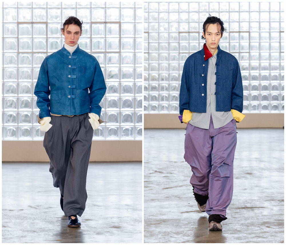 系列中首次采用唐装款式,将皮革、丝绸与羊毛材质的唐装,与剪裁精良的西装相结合。此外,品牌标志性的中山装、长衫在本季焕新演绎。