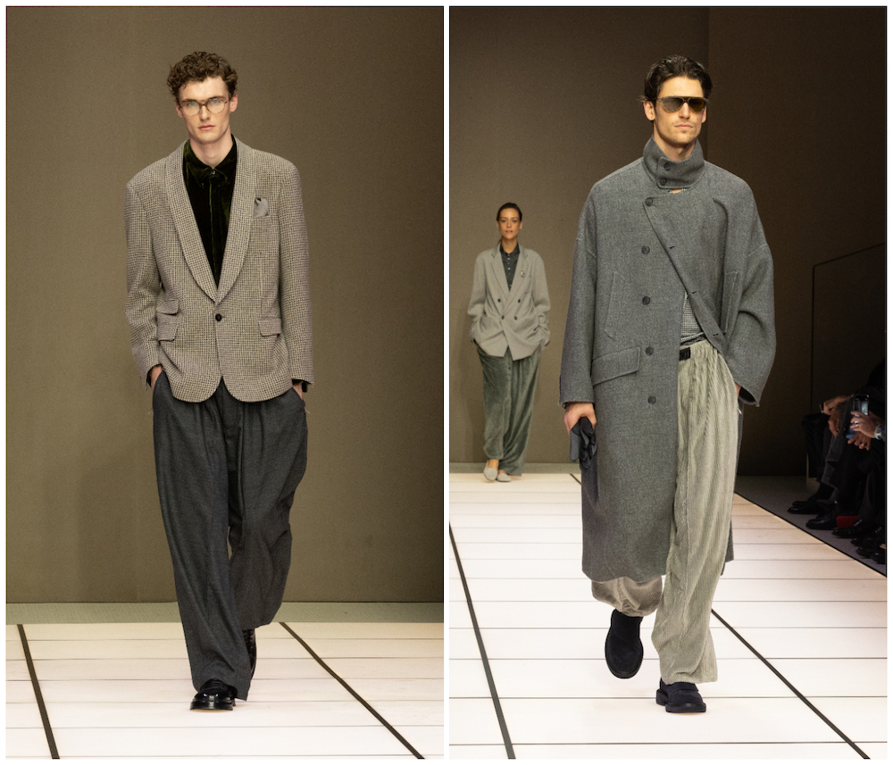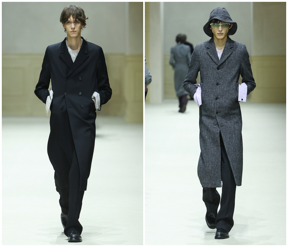本季男装在细节上做了调整:外套与夹克以宽松廓形与立挺肩线呈现;传统的双排扣门襟在本季焕新演绎,部分夹克的双排扣门襟缩减至三分之一长度,有的则在传统双排扣门襟间饰以水平纽扣。