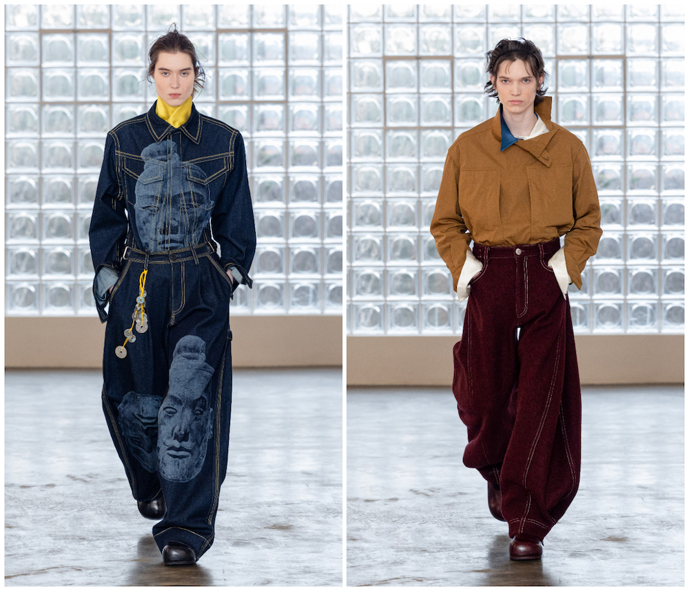 裤装以萝卜裤版型为代表,以利落线条勾勒轮廓。标志性的单褶或双褶设计,被统一运用于丹宁、棉质斜纹布及高密灯芯绒面料上。