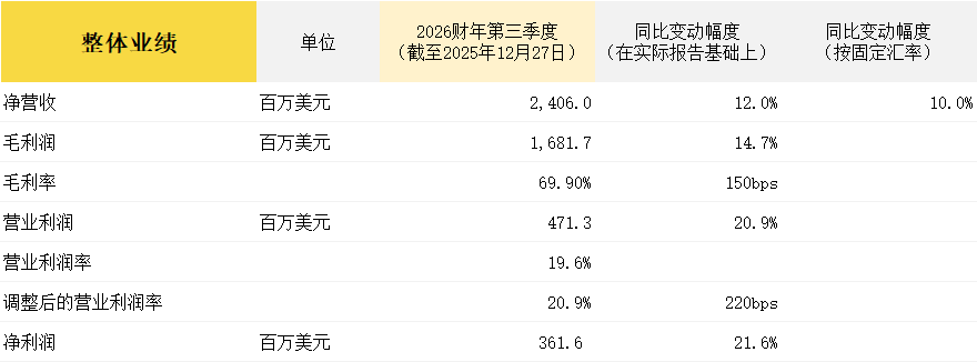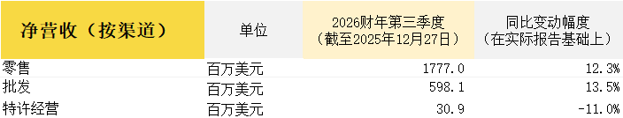 截至2025年12月27日,Ralph Lauren 2026财年第三季度的主要财务数据如下: