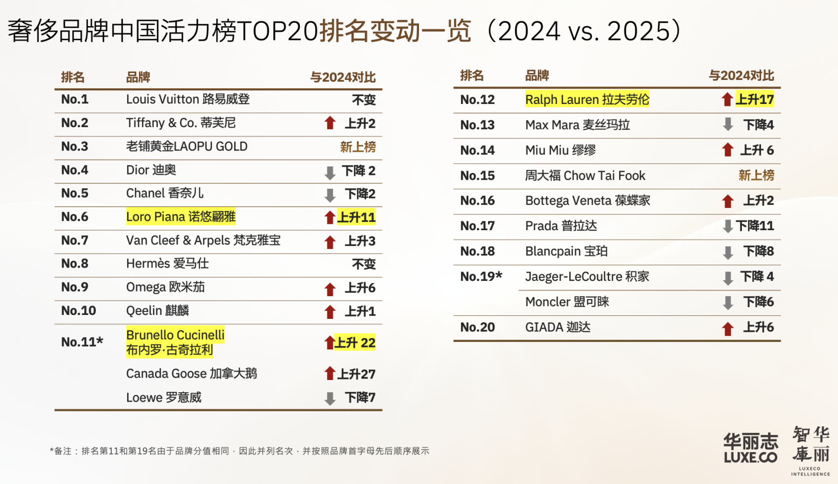 2025年,堪称中国本土奢侈品牌的“破局”之年,两大珠宝品牌(老铺黄金,周大福)首次进入华丽志“活力榜”。
