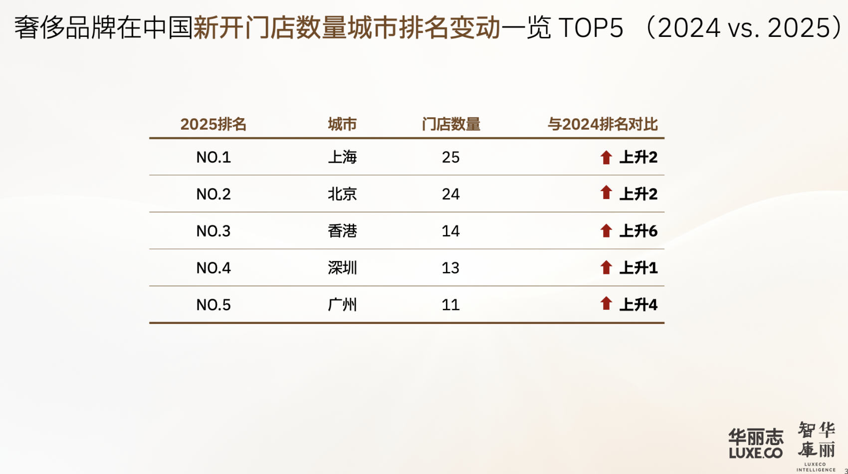 值得一提的是,过去四年,华丽志“活力榜”报告首次录得一线城市的奢侈品牌新开门店数,超过非一线城市。