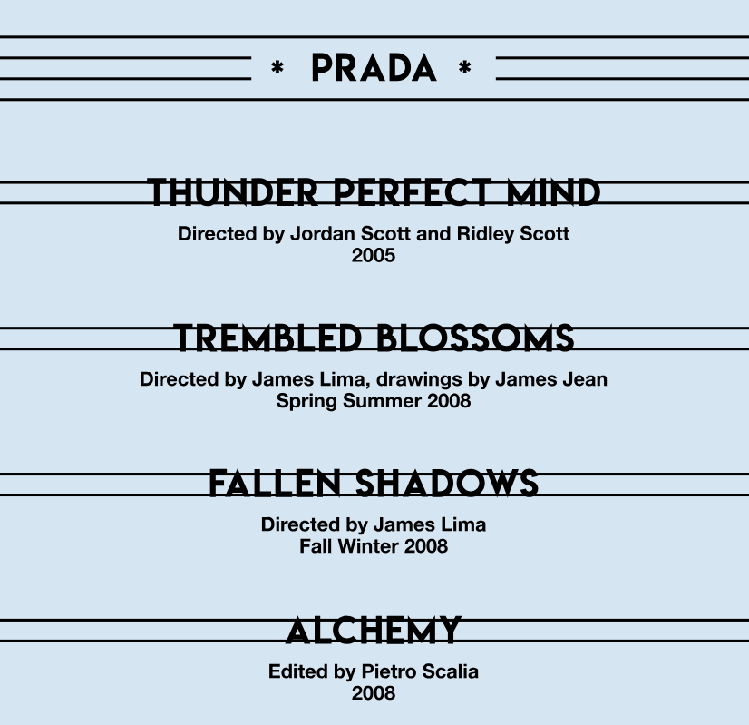 作为普拉达集团传承的重要组成部分,Prada 与 Miu Miu 品牌的出品的电影实验作品就展现出不受预设限制的自由叙事表达,由此诞生了多部享誉国际的短片佳作(下图)。