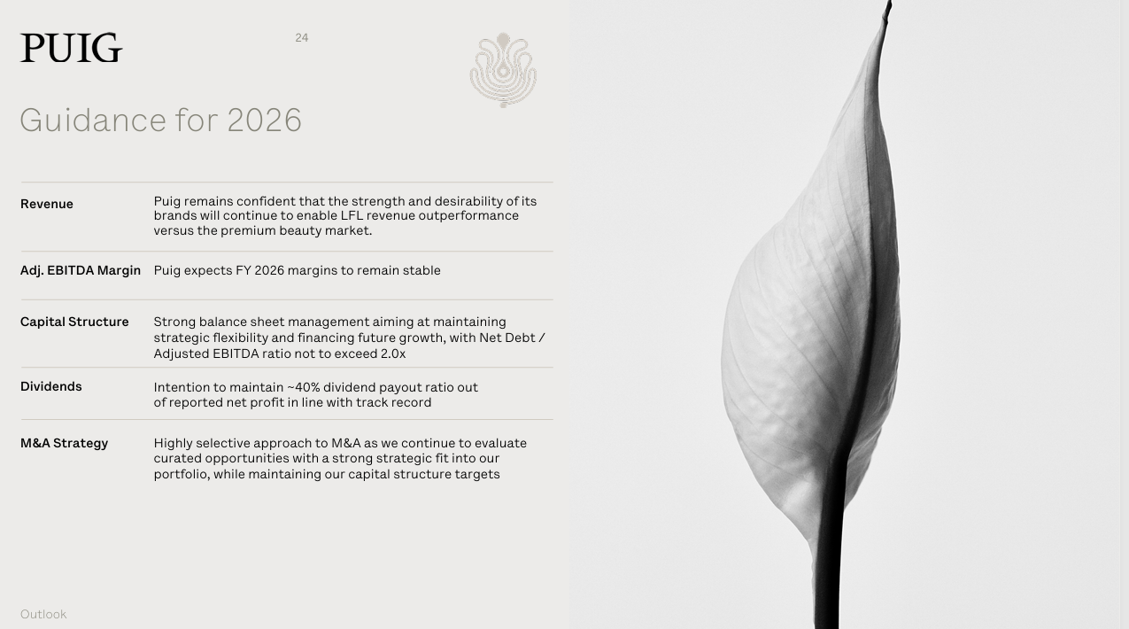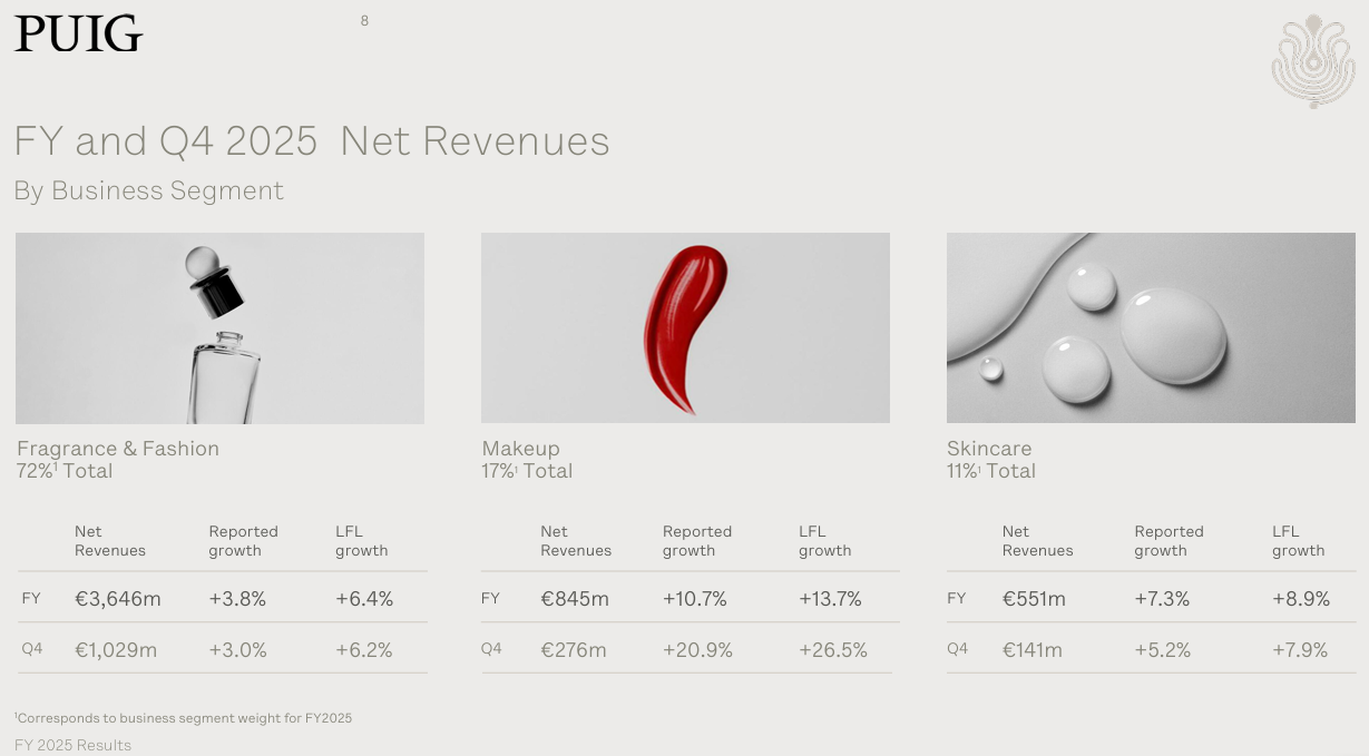 2月18日,西班牙香水美容和时尚集团 Puig 发布了截至2025年12月31日的2025财年业绩数据: