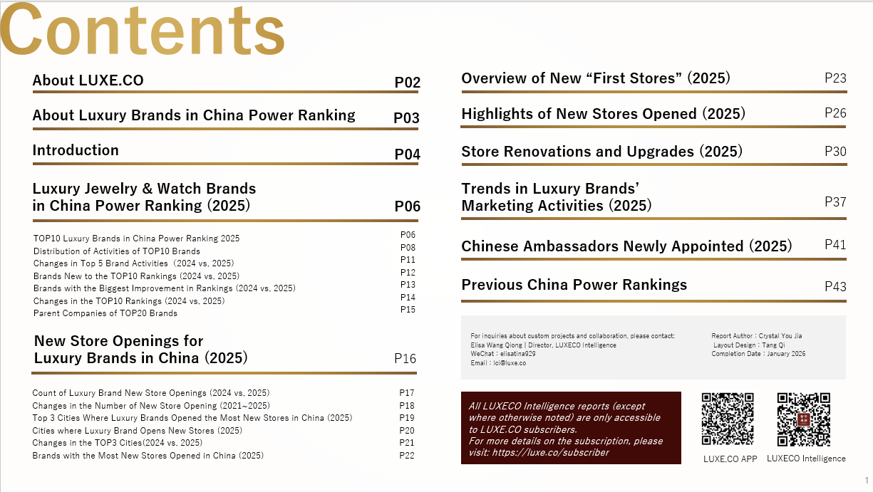The English version of "2025 Luxury Jewellery & Watch Brands in China Power Ranking " by LUXE.CO is now available to download (only accessible by LUXE.CO subscribers).