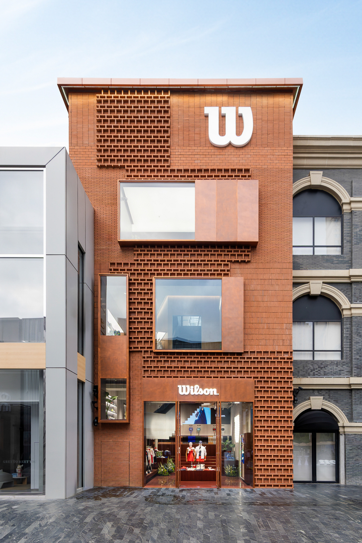 以武汉SKP“砖阁”概念店为例(下图),品牌巧妙汲取武汉传统市井民居的“红砖”元素,融合美式网球俱乐部风格,打造了集试打、穿线与社交于一体的复合空间。