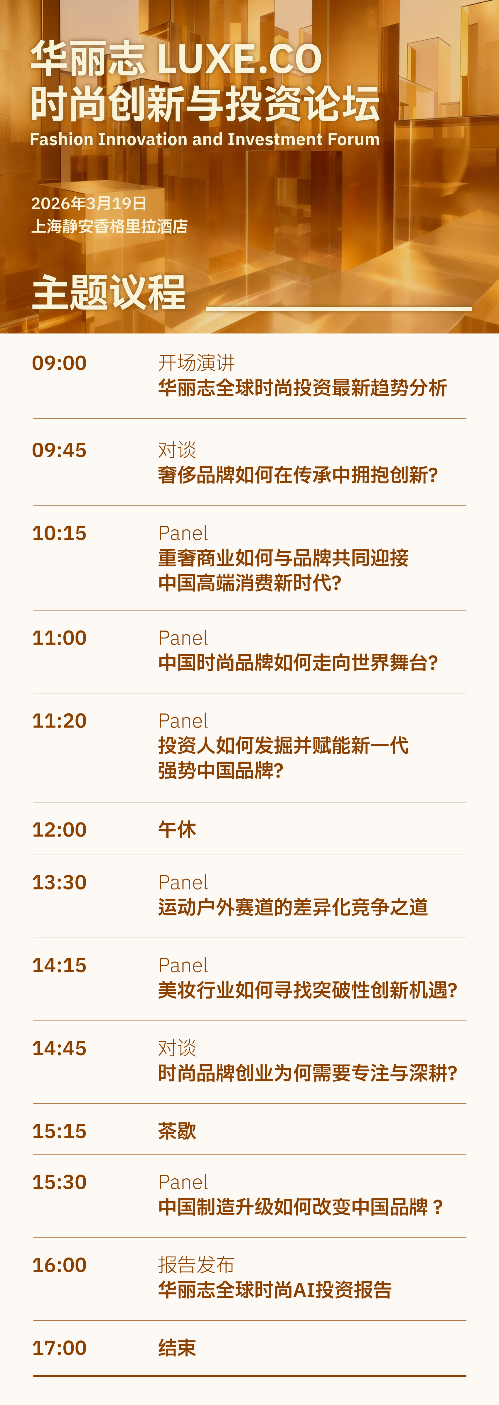 2026年度「华丽志时尚创新与投资论坛」主题议程正式发布!