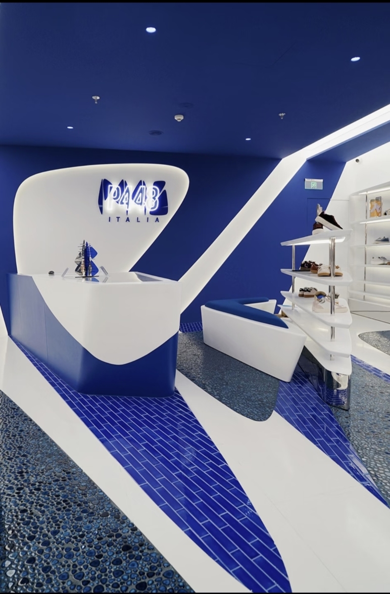 意大利潮流鞋履品牌 P448 在上海环贸 iapm 开设了全新概念店,由知名设计师 Woody Yao 设计,陈列架、座椅、室内装饰都是对品牌标识的重新解构,打造出一座“可触摸的品牌形象馆”。