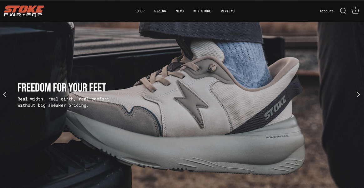 Stoke Shoes 主打运动休闲功能鞋,以长期被运动鞋行业所忽视的美国6500万宽脚型男性为目标客群。