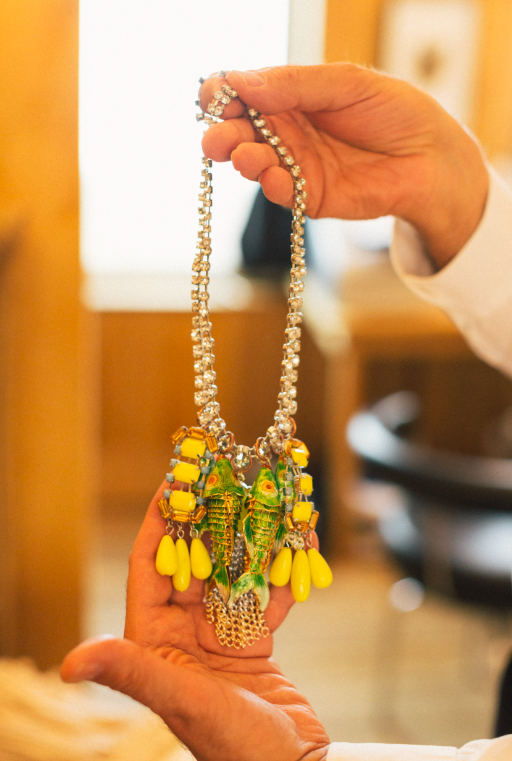 此外,他用非常规材料制作珠宝:将彩色皮手套缝制成伊丽莎白时代的领圈状项链,用塑料娃娃腿串起仿制珠宝、自称“怪物”的毛绒玩具:用斑马身躯配大象头颅,鬃毛由长颈鹿腿构成,背生天使翅膀。