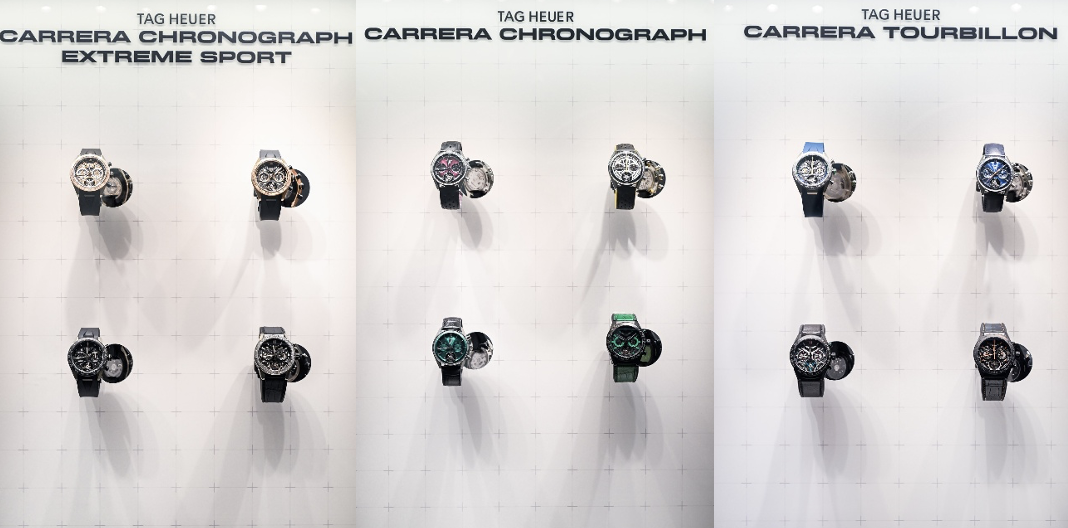 泰格豪雅卡莱拉 (Carrera) 系列与摩纳哥 (Monaco) 系列始终是品牌身份的核心支柱,在不断演进中延续其标志性的设计基因。本展区的一大亮点,是首次全面呈现品牌陀飞轮计时腕表系列,充分展现泰格豪雅在复杂机械制表领域的非凡造诣。
