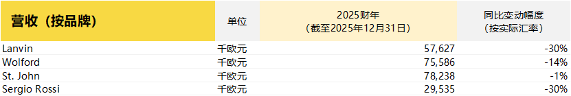 截至12月底,Lanvin Group 2025年初步业绩数据如下: