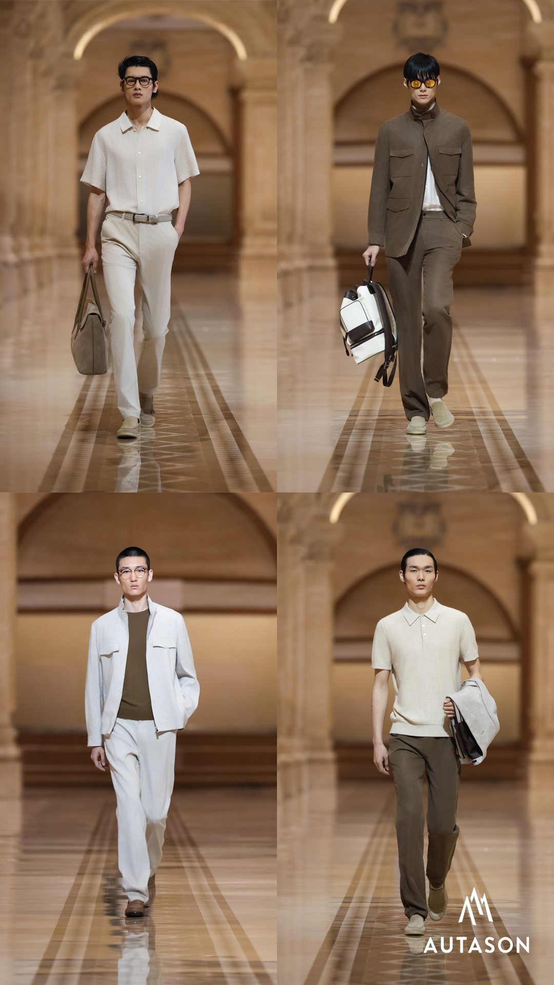 上图:本季 AUTASON 以全新亚麻、13.5 微米铂金羊毛、纯天然桑蚕丝等珍贵原料为核心