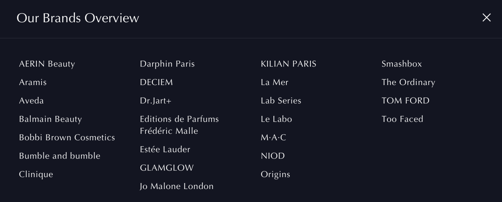 雅诗兰黛集团是全球高端美妆行业的领军企业之一,集研发、营销与销售于一体,提供高品质的护肤、彩妆、香水及护发产品,旗下拥有20多个品牌(详见下图),包括 雅诗兰黛(Estée Lauder)、海蓝之谜(La Mer)、倩碧(Clinique)、祖玛珑(Jo Malone)、勒莱柏(Le Labo)等。2022年,雅诗兰黛集团以28亿美元收购了美国设计师品牌汤姆福特(TOM FORD),这是公司迄今为止规模最大的一笔收购交易。