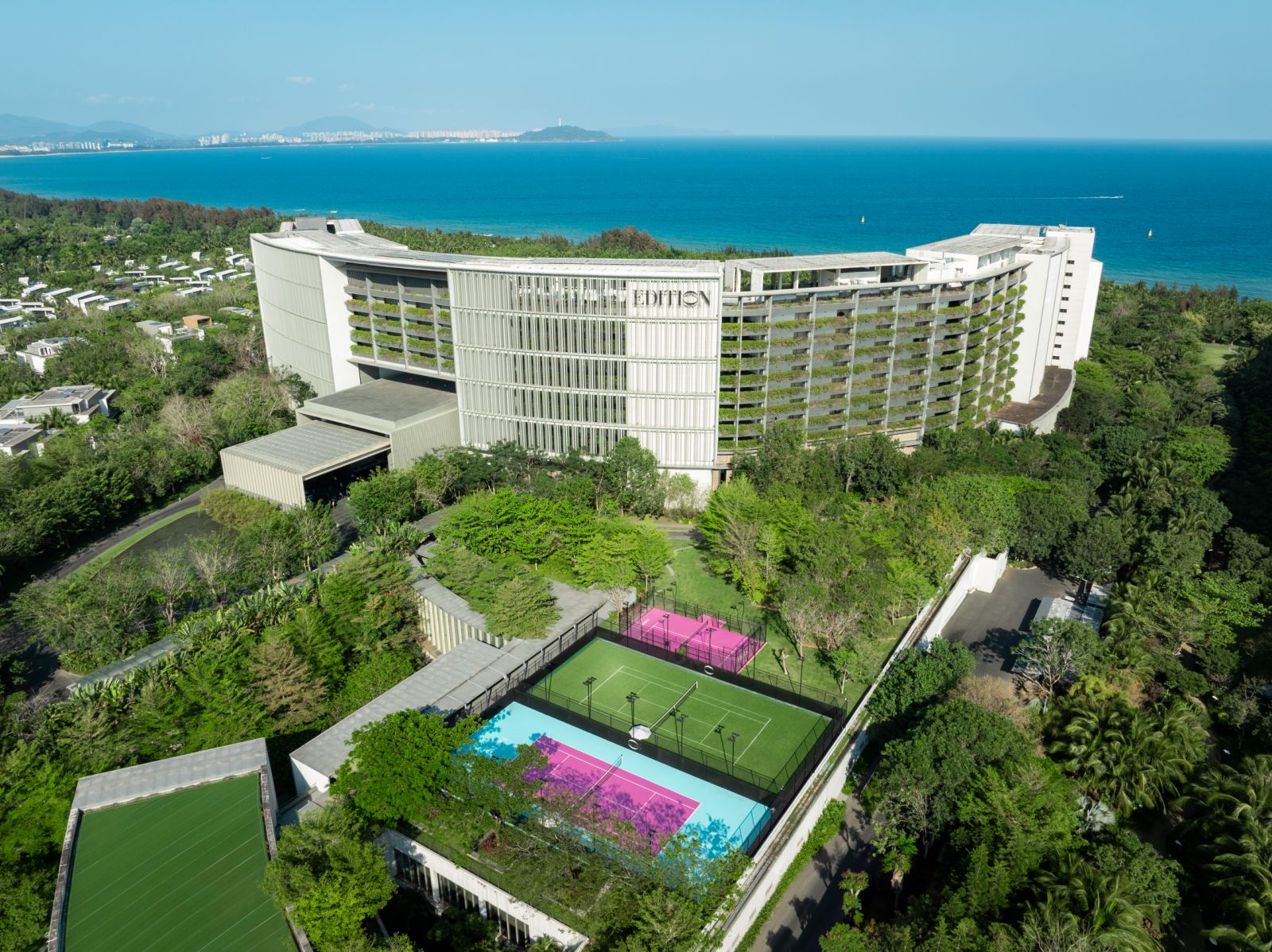 上图:三亚艾迪逊酒店,2025年新设有真草网球场、弹性丙烯酸网球场、板式网球场、匹克球场