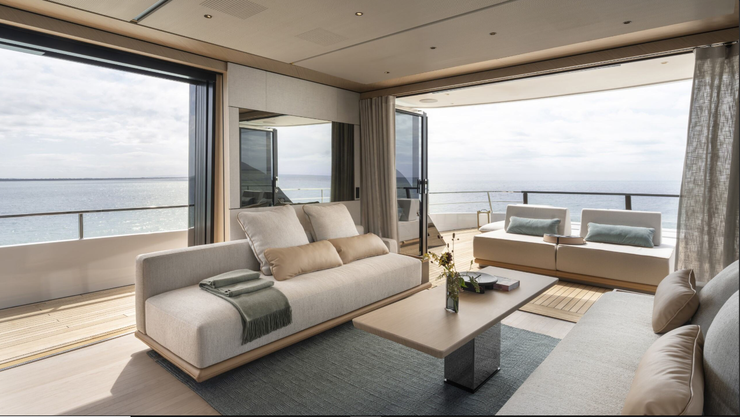 此外,借助与意大利知名建筑设计工作室 m2atelier 的首次合作,我们还引入了 “赤足奢感”(barefoot luxury)理念。这一理念代表着一种全新的游艇生活方式,主要面向新一代年轻客户群体,他们对奢华的追求更偏向于轻松自在、非正式的表达。