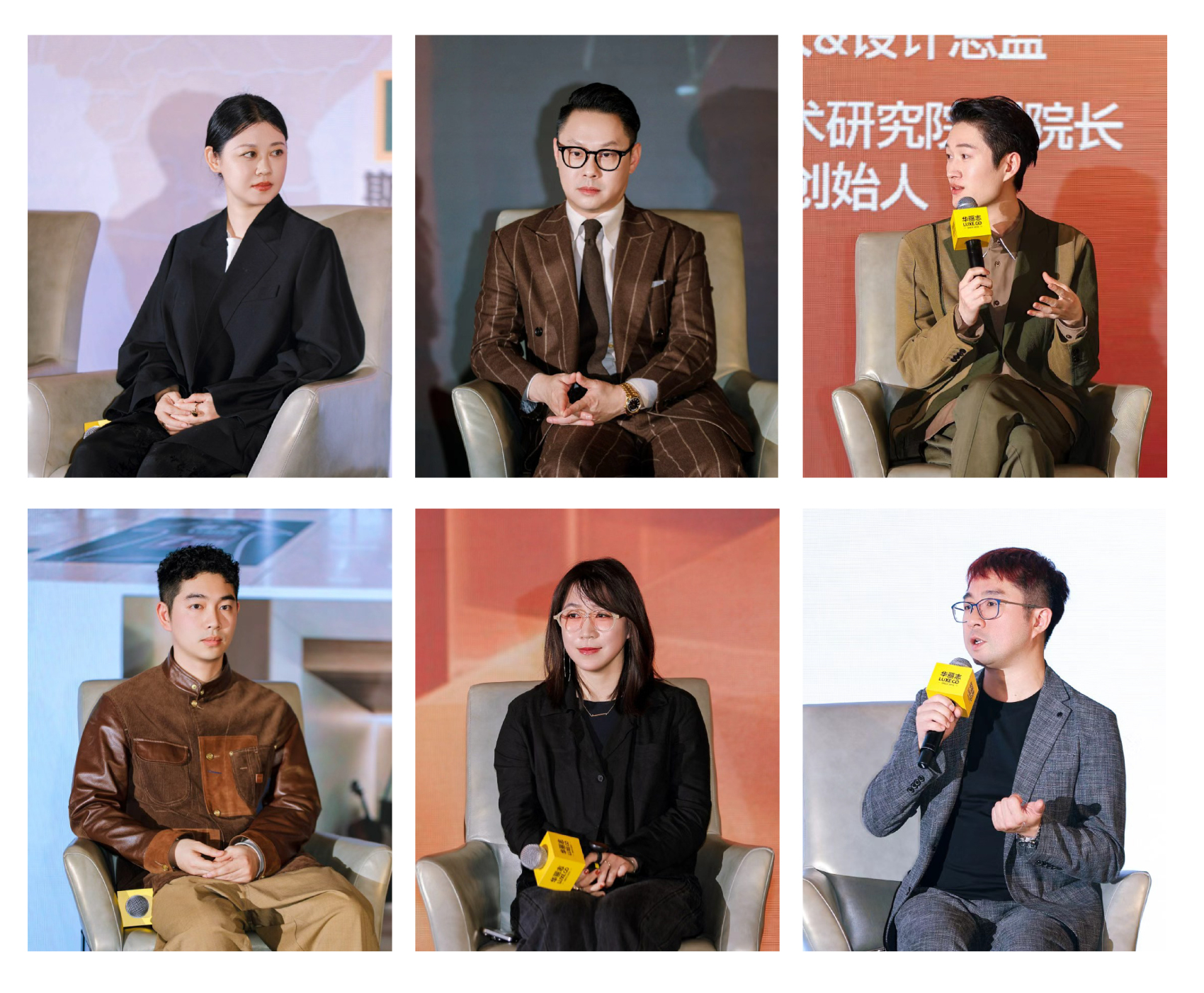 上图从左到右:华丽志高级副总裁王琼;CHENPENG 品牌创始人陈鹏;Samuel Wang 创始人王翊超;GARCON BY GARCON 品牌创始人&设计总监唐大耘;中国美术学院园艺城市设计艺术研究院副院长 & 杭州上下设计创始人孙玥雯;YIN隐创始人武崟;中免国际有限公司国潮出海事业部副总经理李志峰