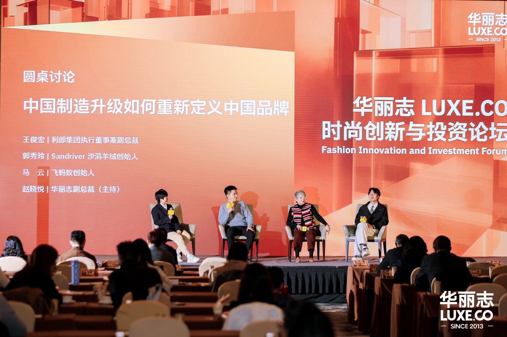 在「中国制造升级如何重新定义中国品牌?」这一主题圆桌论坛中,利郎集团执行董事兼副总裁王俊宏、中国羊绒品牌沙涓(Sandriver)创始人郭秀玲、飞蚂蚁创始人马云与华丽志副总裁赵晓悦就以下议题展开探讨: