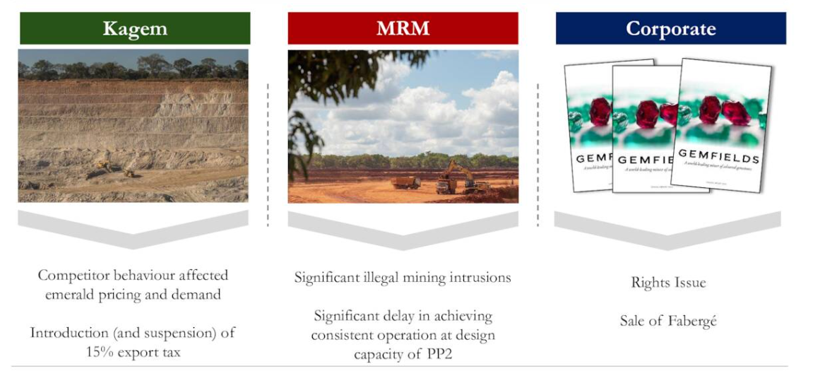 蒙特普埃兹红宝石矿方面,高品级红宝石提取率持续偏低、第二座加工厂投产延迟,叠加非法采矿活动增加,均对项目运营表现造成影响,高价值宝石产量随之减少。