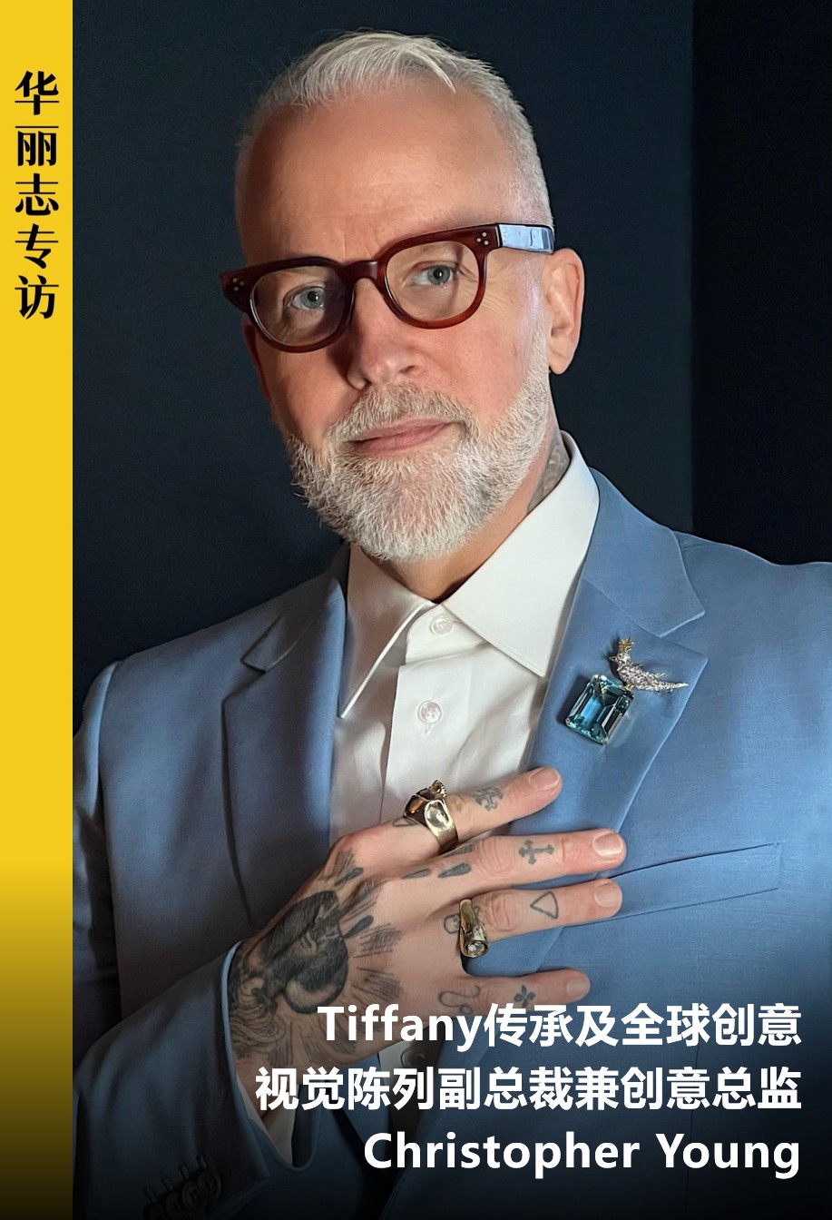 Christopher 年轻时曾作为插画师为 Tiffany设计橱窗,2011年正式加入品牌,得以深入接触蒂芙尼古董珍藏馆。如今,他也同时负责品牌全球创意视觉及陈列,堪称蒂芙尼美学的“守门人”。