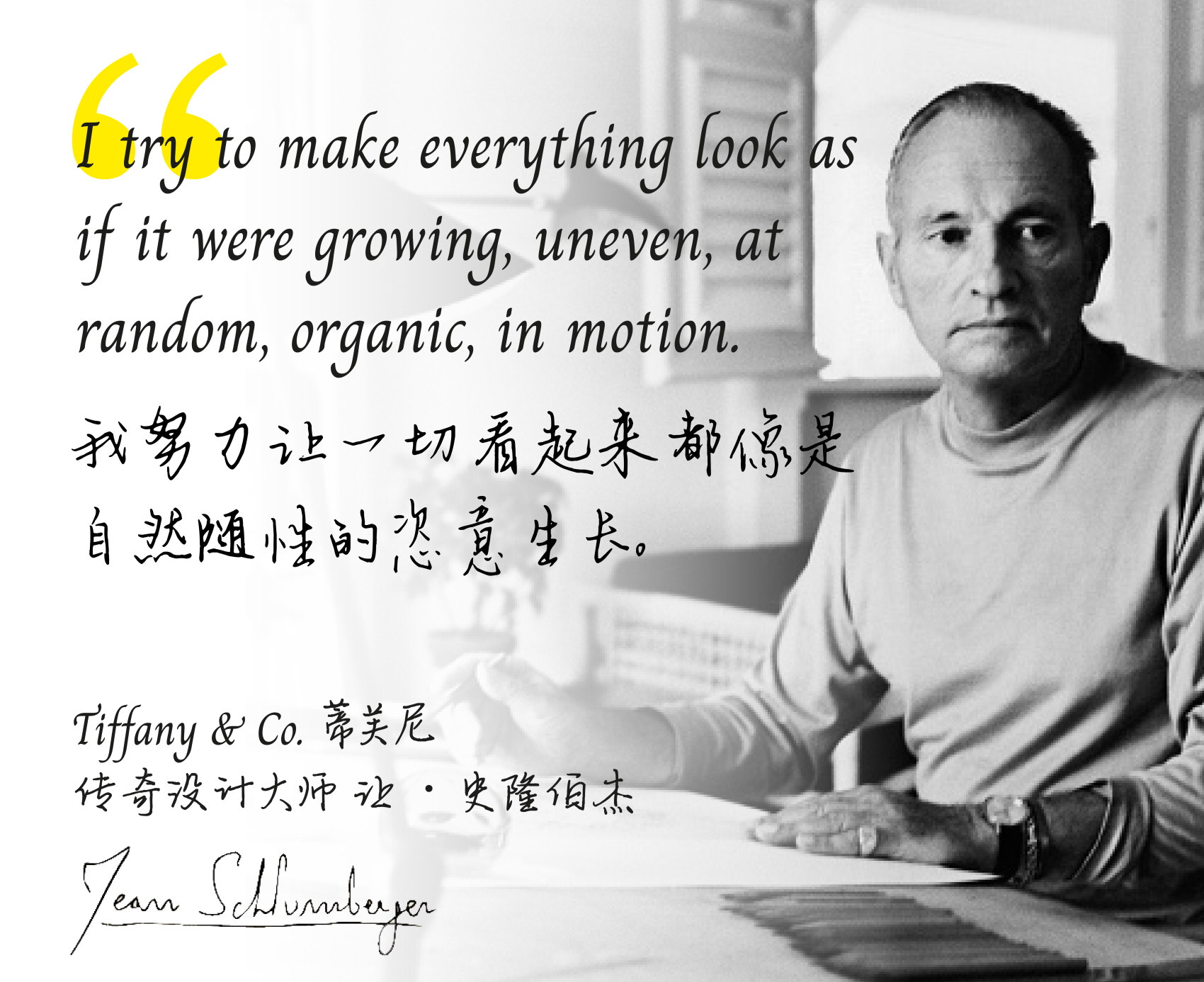“他为 Tiffany注入了生机盎然且不失优雅的新鲜创作活力。这种活力丝毫不显严肃,不像欧洲的那些传统珠宝商。”