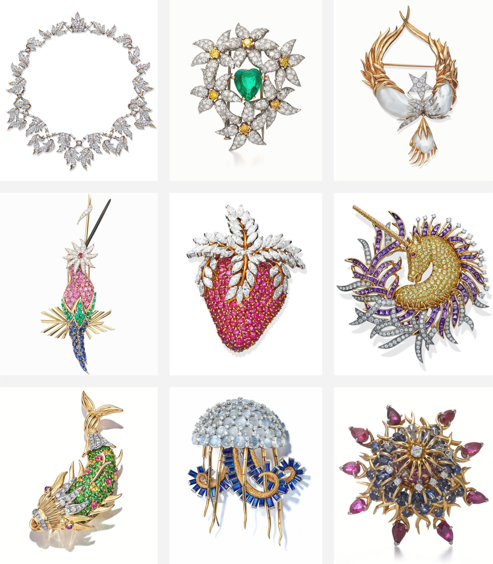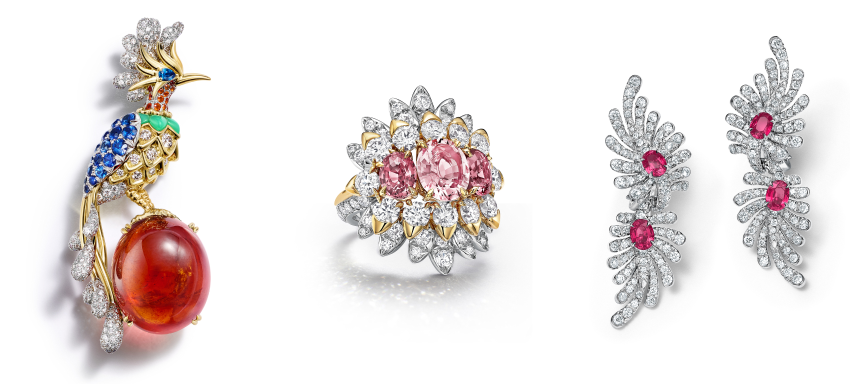 在与 Tiffany的紧密合作中,史隆伯杰用珍贵的材质、赤诚的视角,创作出一系列色彩热烈、形态奔放、充满热带海洋气息的作品,树起了高级珠宝发展史上一座座不朽的丰碑。