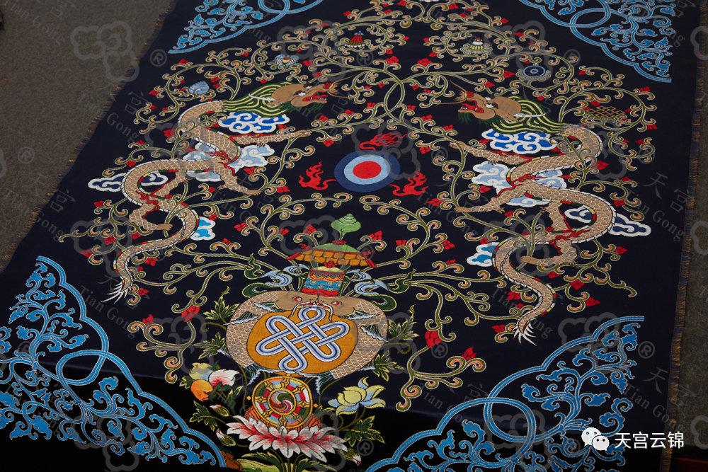 上图:天宫云锦公司织造的“二龙戏珠缠枝藏八宝妆花缎”