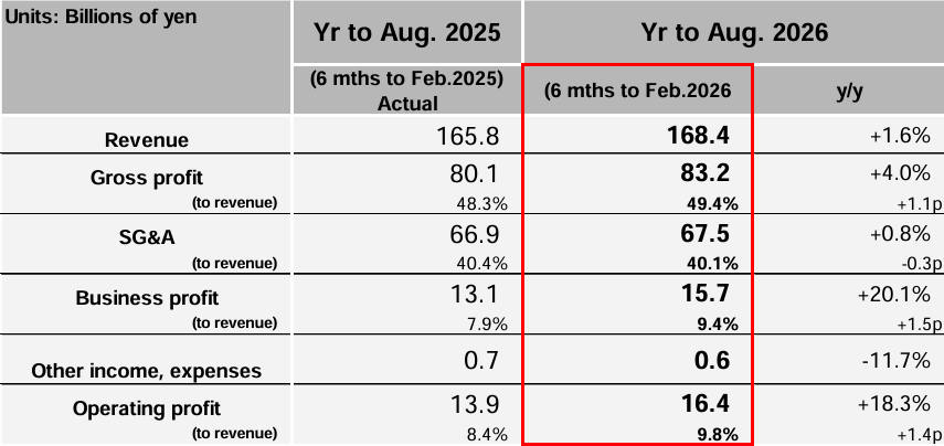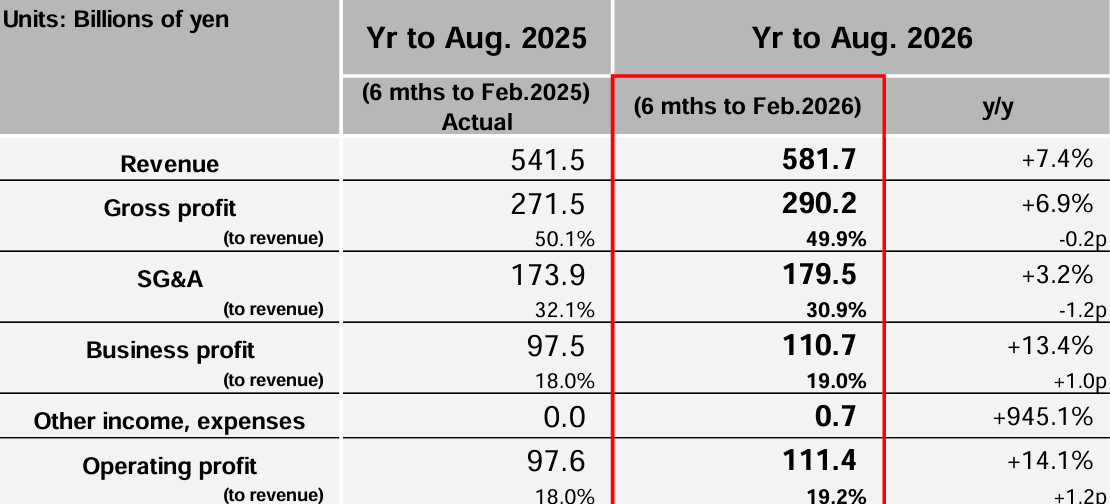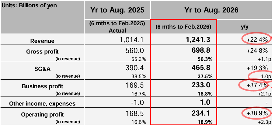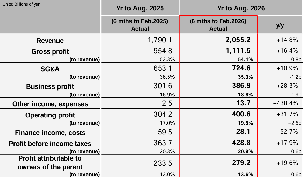 截至2月28日,迅销集团2026财年前6个月关键财务数据如下: