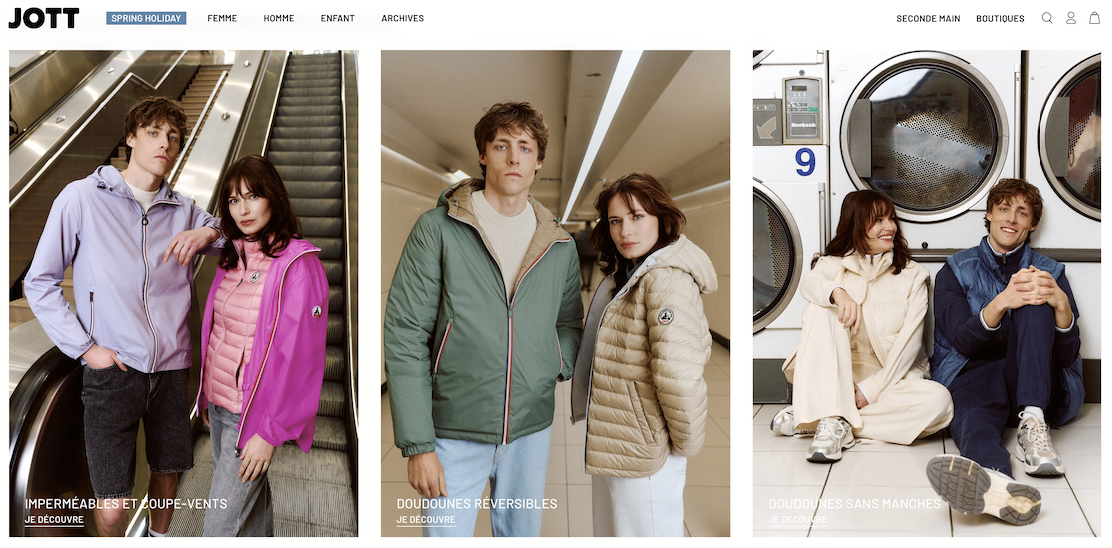 JOTT 由 Mathieu Gourdikian 与 Nicolas Gourdikian 于2010年创立,提供舒适、经济、多功能的男装、女装、童装外套,最著名的产品是轻型羽绒服系列。2021年,LVMH集团旗下的消费品私募基金 L Catterton 收购了品牌的控股权,创始人两兄弟保留少数股权。巅峰时期,JOTT 的年营收约为7000万欧元,拥有40家直营门店。