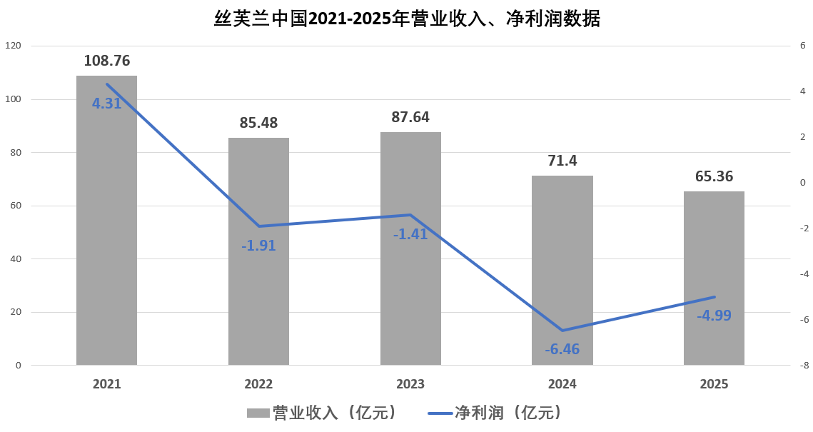 根据丝芙兰中国战略合作伙伴——上海家化此前公布的2025财年报数据(2026财年第一季度数据暂未公布),丝芙兰中国(包括北京和上海公司)2025年营收为65.36亿元,同比下降8.5%;但净亏损有所收窄,从上年的6.46亿元降至4.99亿元,减亏1.47亿元,已经显现出一些积极趋势。